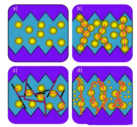 Il riempitivo forma canali di conducibilità termica continua nella matrice polimerica, attraverso i quali viene trasmesso il flusso di calore, bypassando le aree di resistenza termica elevata della matrice. Quando il contenuto di riempimento è basso, la loro distribuzione casuale rende difficile formare percorsi efficaci; All'aumentare del riempitivo, entrano in contatto tra loro per formare una catena o una struttura di rete, migliorando significativamente la conducibilità termica.