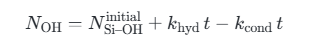 Tra questi, khyd è la costante di velocità di idrolisi, kcond è la costante di velocità di disidratazione e condensazione ed è il tempo di trattamento. Questo modello può descrivere quantitativamente il trend di evoluzione dei gruppi idrossilici con trattamento termico o trattamento termico umido.